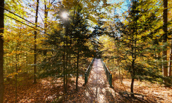leading to several hiking trails along the creek below Thunder Bridge. This panorama was taken from a pole setup about 12 feet above the walkway.