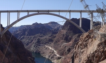 control, and to furnish irrigation water. In this panoramic mini-tour, 2 views are presented from the highway bridge over Black Canyon, an excellent vantage point. The tripod was left in the first panorama (a spherical) to give you a sense of the camera's position for the 2nd panorama, a 65-shot high-rez flat pano. Try zooming way, way in.