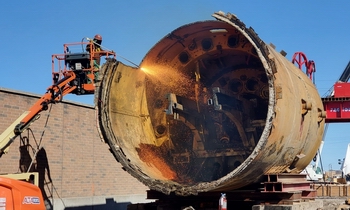 Slideshow of the extremely difficult and complicated project to reach a tunnel-boring machine trapped 90 feet below the surface, lift it to the surface, cut it up for scrap, lower a new one into the shaft, then cover it all up as if nothing had ever been there! 94 slides. Pictures can be advanced manually using the arrows, or automatically by moving the mouse out of the picture area. To stop auto advance, keep mouse in picture area.